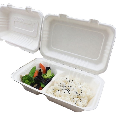 生分解性食品容器包装9*6インチ2コンパートメントランチボックススタイルクラムシェル